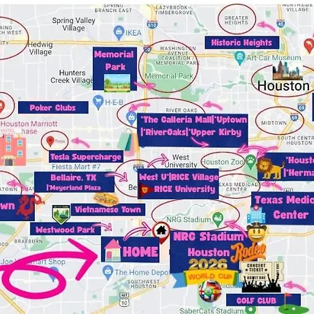 Guest Suite Plus Primary Bedroom 3 Mins To Nrg Stadium World Cup, Sleeps 5 Houston villa is located approximately a 25-minute walk from the Meyerland Plaza Shopping Center and welcomes its guests to enjoy tennis.
